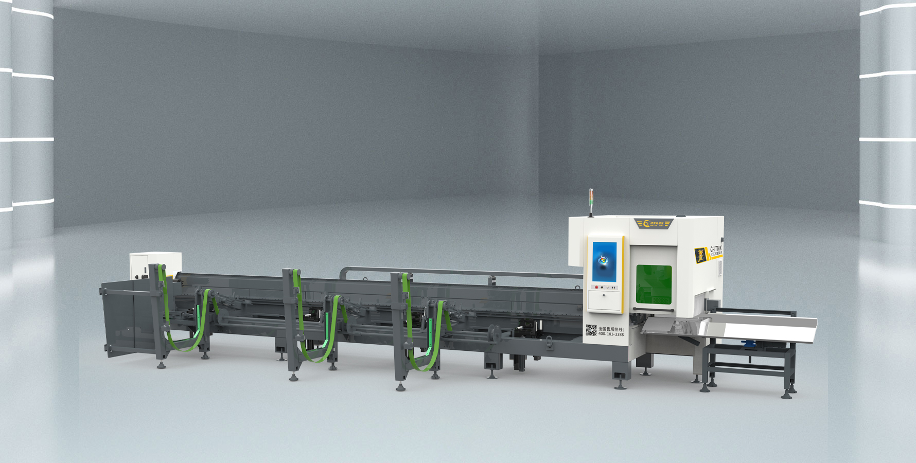 搭配全自動上料架機構(gòu)上料無需停機;高剛性框架式結(jié)構(gòu)設(shè)計可放置更多管徑較大的管材,儲存量可達2噸。